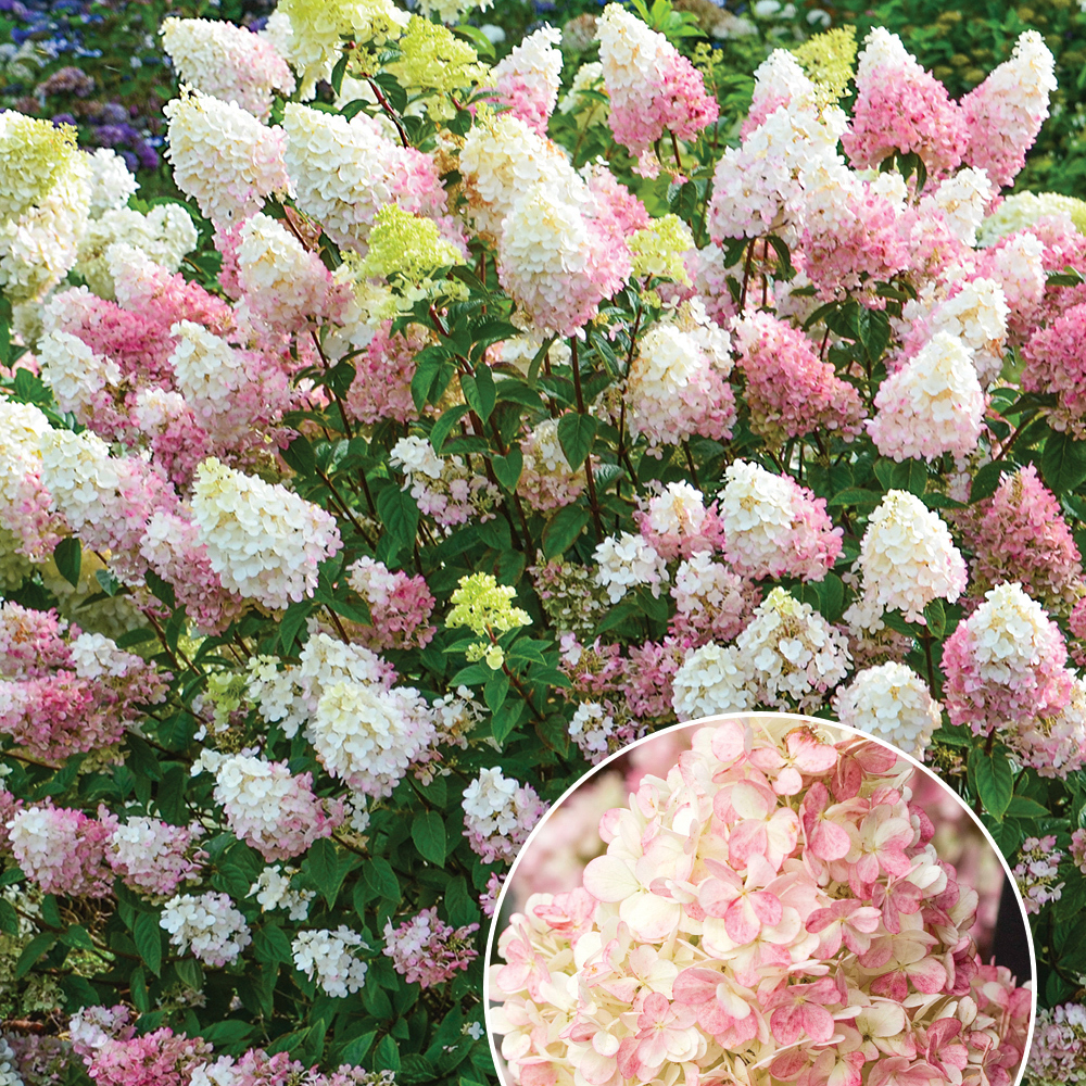 Hydrangea paniculata Sundae Fraise — мініатюрний сорт, який вражає рясним цвітінням і плавними переходами кольорів. Ідеально підходить для невеликих ділянок і контейнерного вирощування.