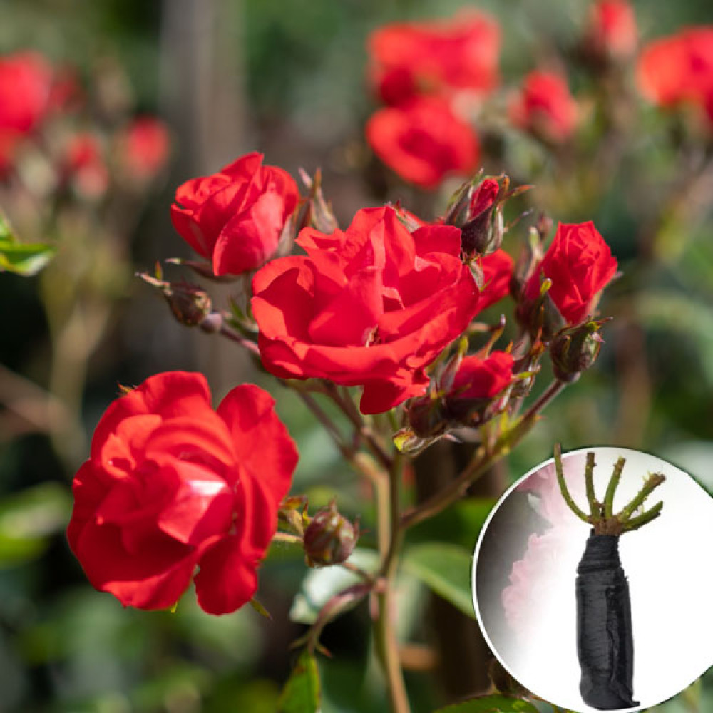 Троянда Red Mozart — сорт із простими квітками яскравого оранжево-червоного забарвлення. Сорт є спортом формує великі китиці квіток, тому добре підходить для ландшафтних посадок і широких бордюрів.