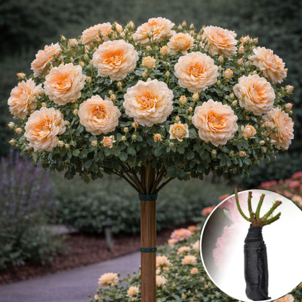 Троянда штамбова Polka 91 — штамбова форма сорту Polka 91 з великими дуже повними абрикосово-мідними квітками, що світлішають до кремових по краях. Квітки мають хвилясті пелюстки й м’який аромат старовинної троянди.