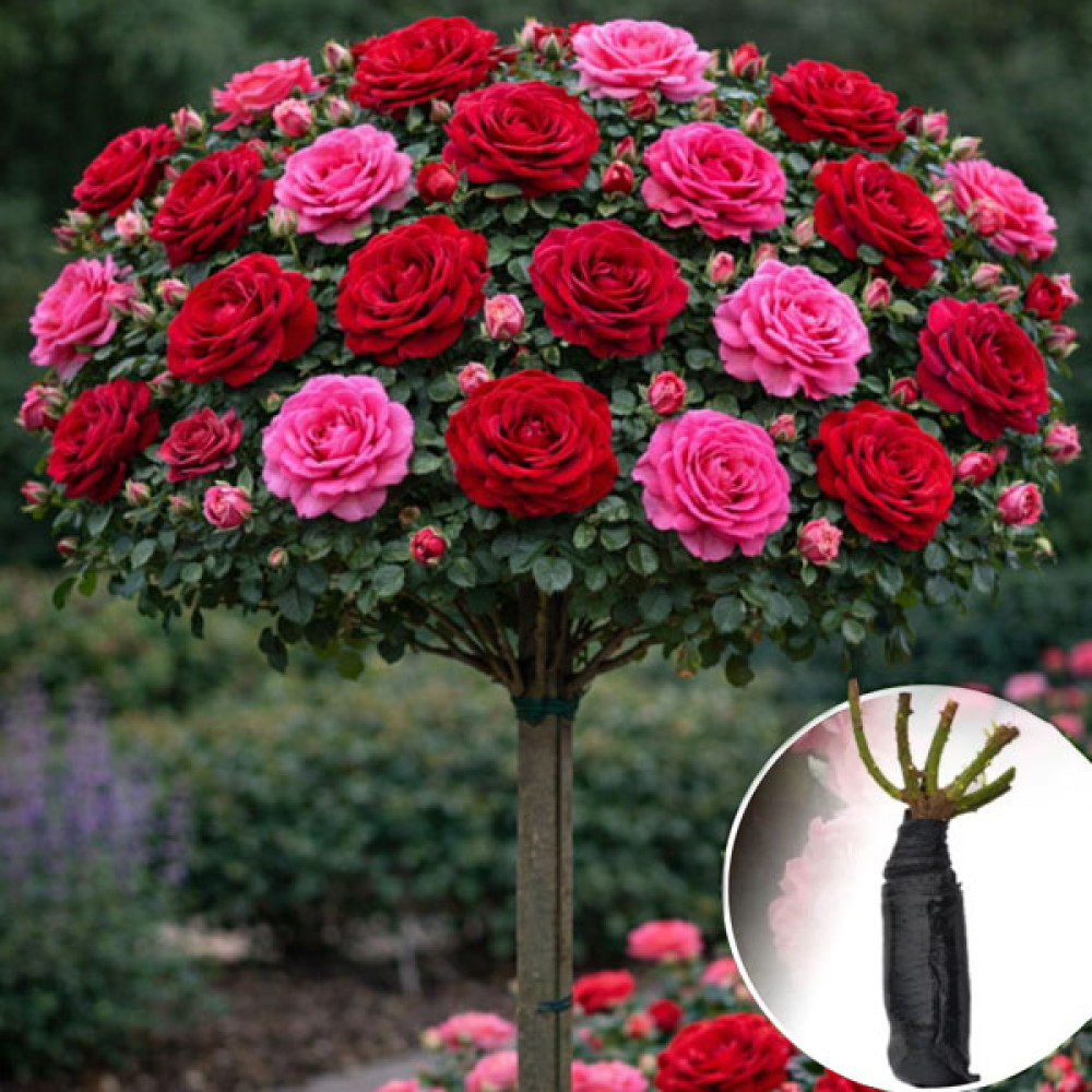 Штамбову троянду висаджують на сонячному місці в дренований родючий ґрунт, підв’язують до міцної опори й захищають місце щеплення в кроні взимку. Для комбінованої крони важливо підтримувати рівновагу обрізкою