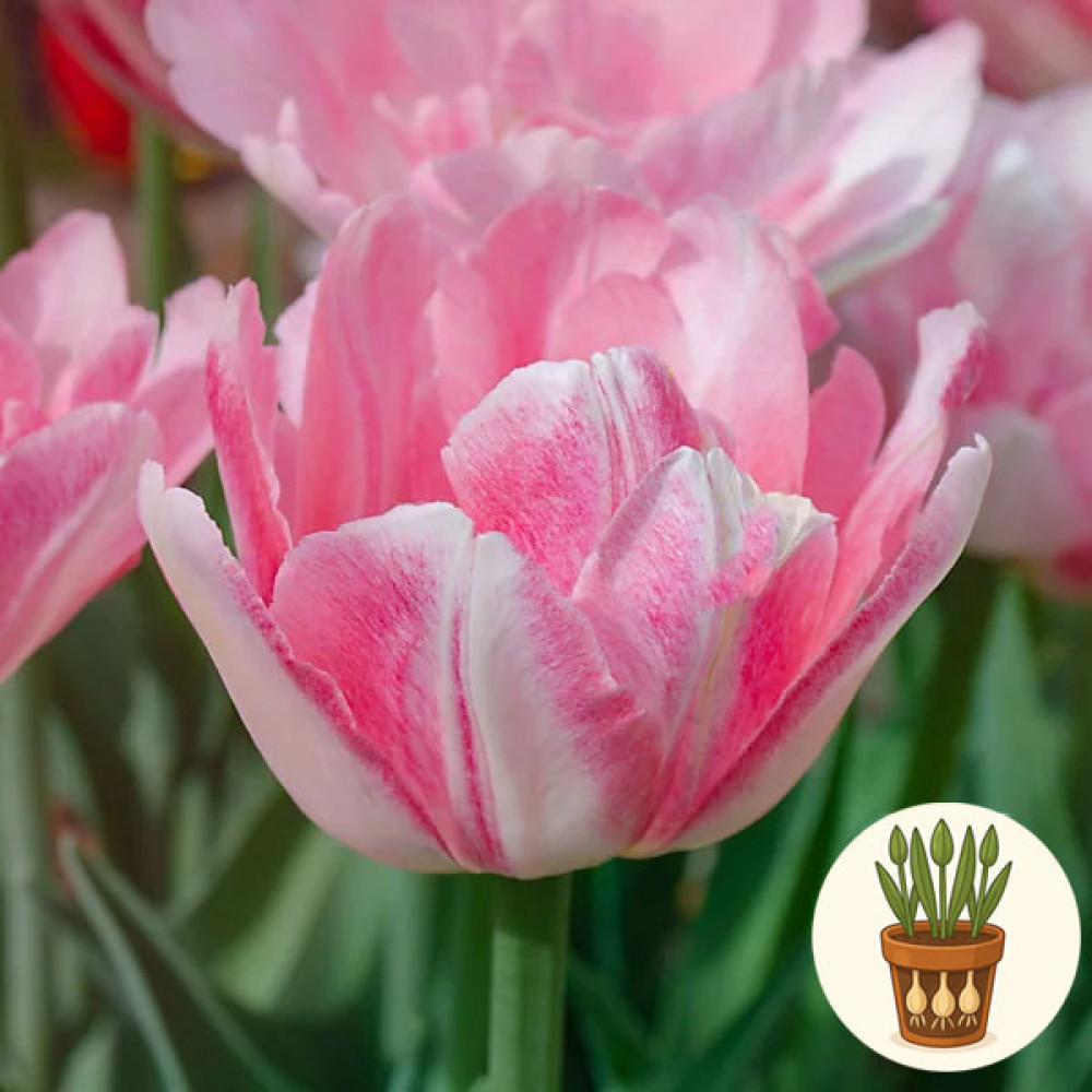 В горшок высажены три луковицы тюльпана сорта Mariage. Это изысканный махровый сорт с крупными цветами нежного розово-кремового оттенка с мягким высветлением к краям лепестков. Пышные, розовидные бутоны напоминают праздничный свадебный букет и отлично подходят для романтичного весеннего декора в доме или на террасе.
