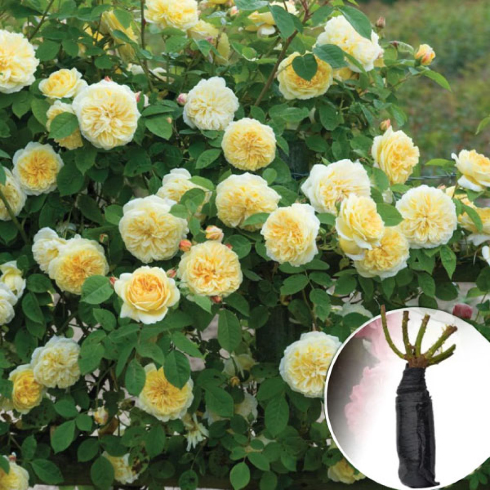 Роза Cyrano de Bergerac — плетистый сорт с крупными густомахровыми цветками в романтическом стиле и нежной светло-жёлтой окраской. Хорошо подходит для арок, пергол и срезки.