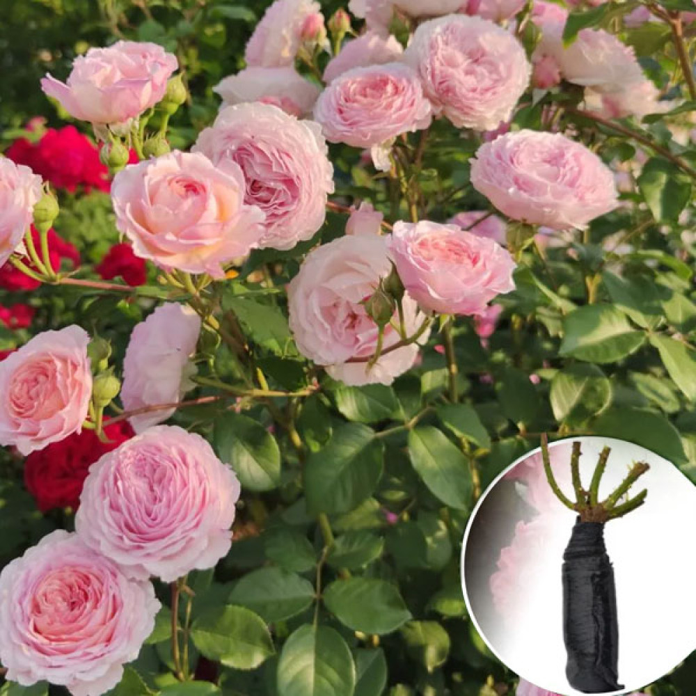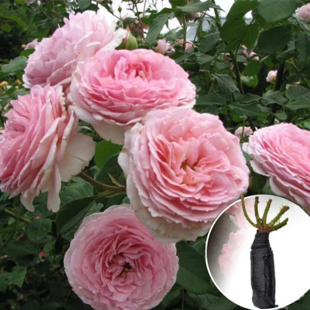Роза James Galway — английская плетистая роза с крупными густомахровыми цветками нежно-розового цвета. Хорошо подходит для стен, заборов, обелисков и посадки возле дома.