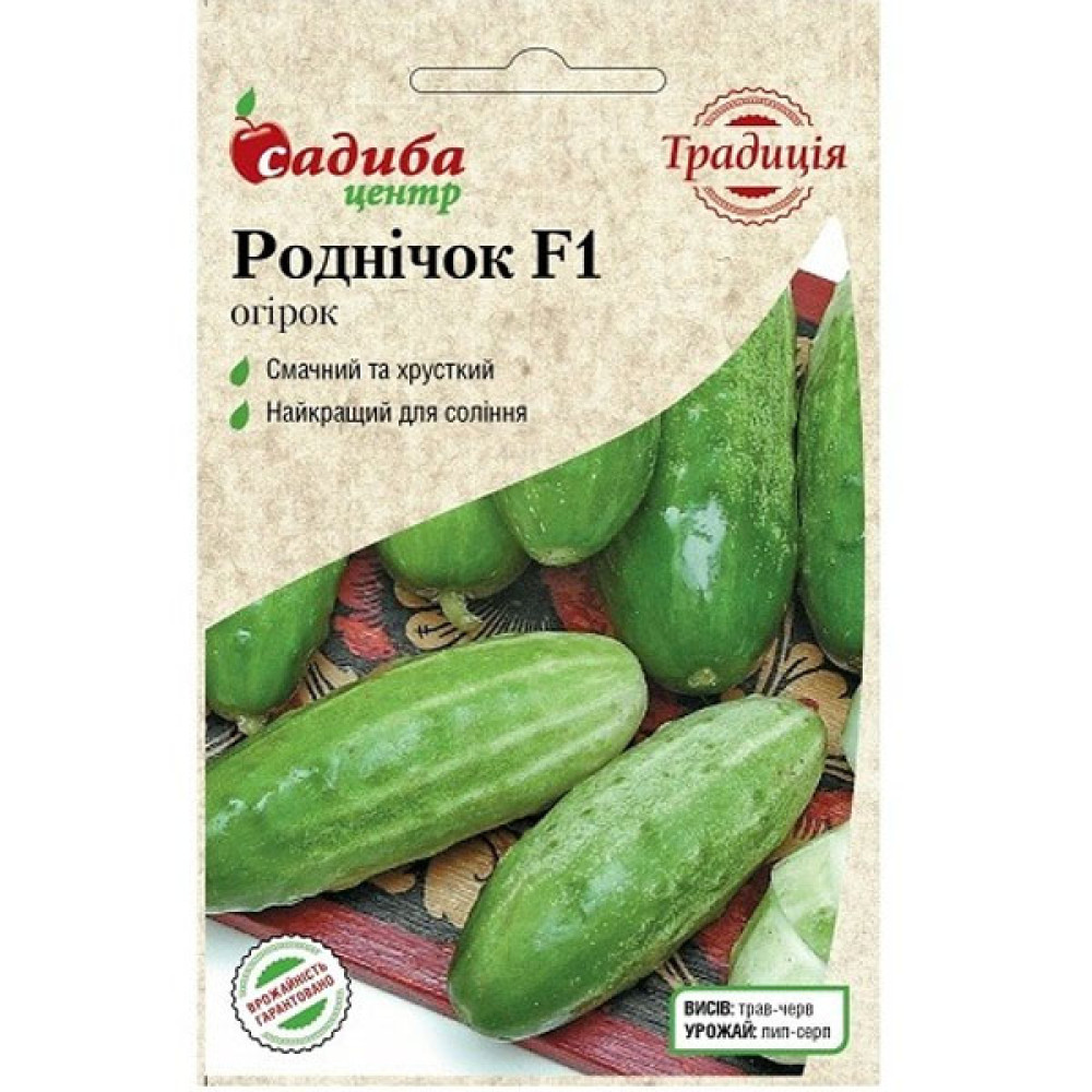 Огірок Роднічок F1 - представник середньо-раннього сорту бджолозапильного типу. Вегетаційний період настає через 50 днів після перших сходів. Зазвичай рослина, вирощується у відкритому грунті, а також в плівкових теплицях. Посів проводиться на глибину 2,5-3 см. Циліндричні плоди зеленого забарвлення мають чудовий смак без гіркоти та вагу до 100 г. Завдяки чудовим смаковим якостям даний сорт користується великою популярністю. Роднічок F1 надає перевагу добре родючим грунтам, а також внесенню мінеральних добрив. Оптимальна температура при які рослина активно розвивається досягає +25С. Плоди даної культури використовують для споживання в свіжому вигляді, консервації та переробки.